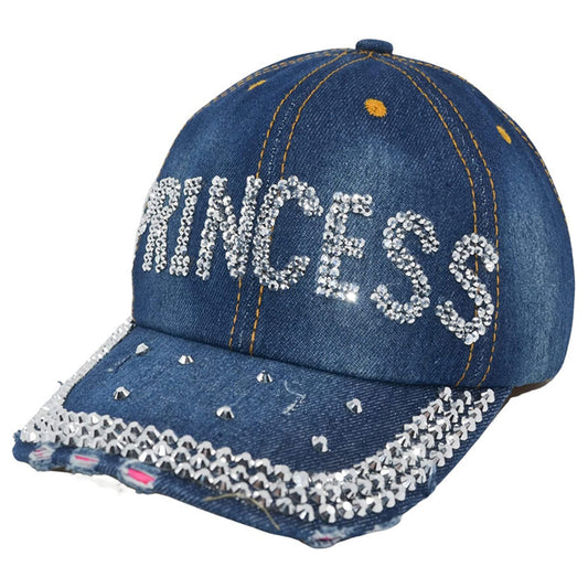 Bedazzled Princess Crown Rhinestone Hat, Bling Denim Baseball Cap for Women