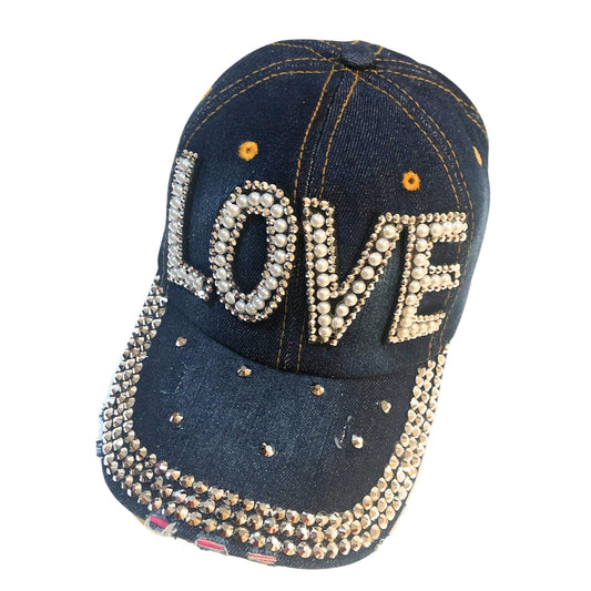 Bling "LOVE" Rhinestone Denim Hat, Bedazzled Baseball Cap for Women