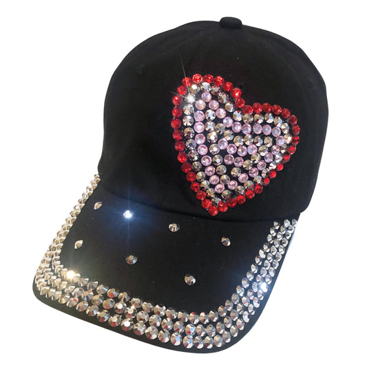 Bedazzled Rhinestone Heart Hat for Women, Black Bling Baseball Cap, Sparkly Gift