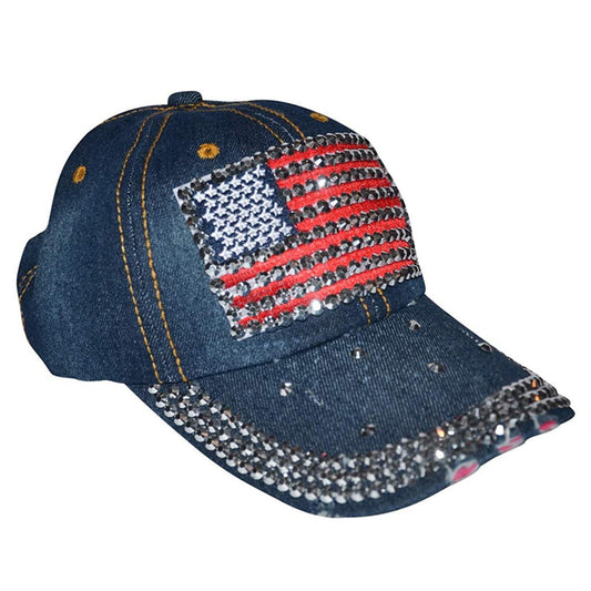 American Flag Hat Women’s Distressed Rhinestone Patriotic Baseball Cap