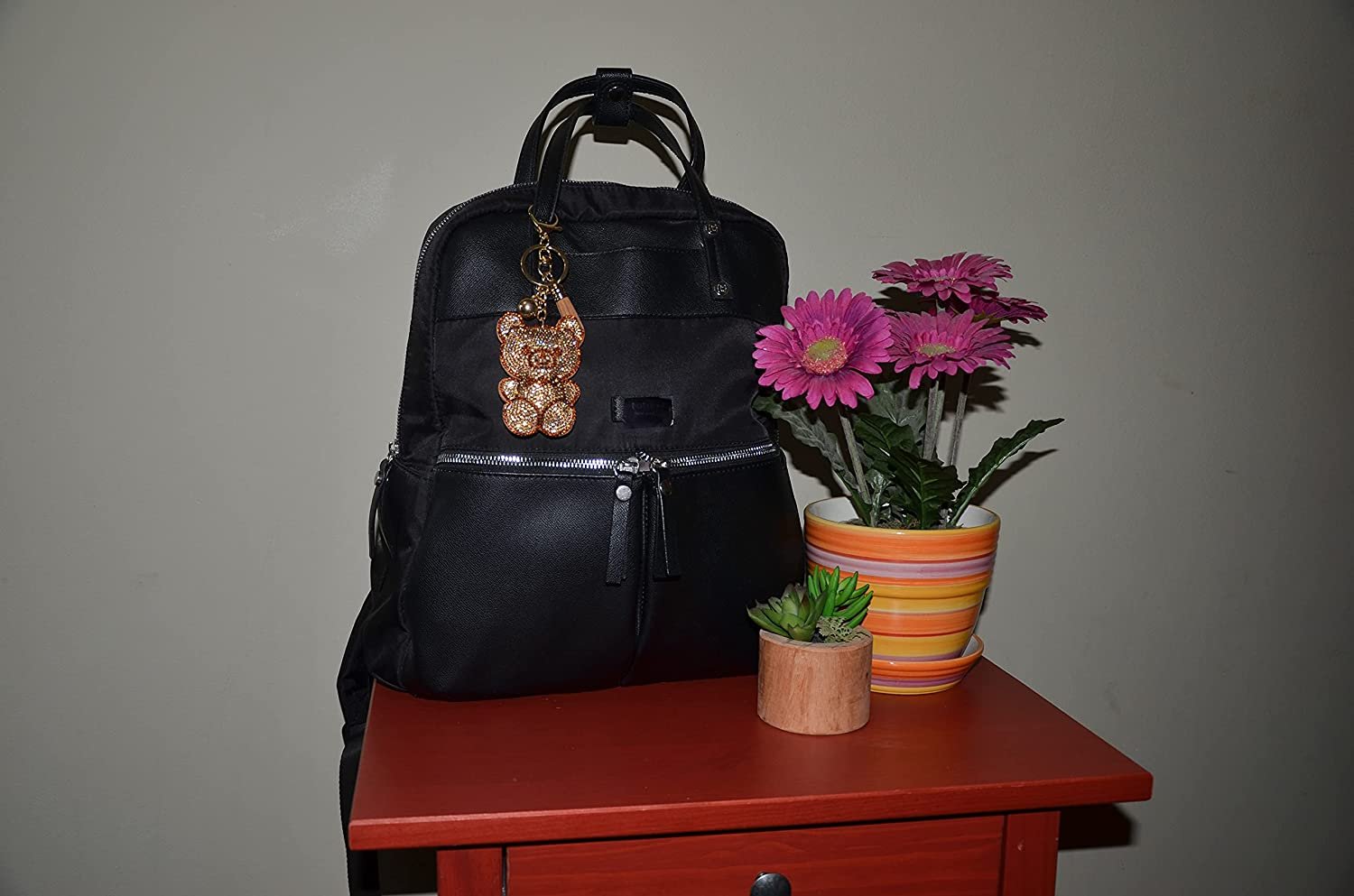 Brown Teddy Bear Keychain for Women and Girls, Bling Backpack Charm, Rhinestone Purse Charms for Handbags